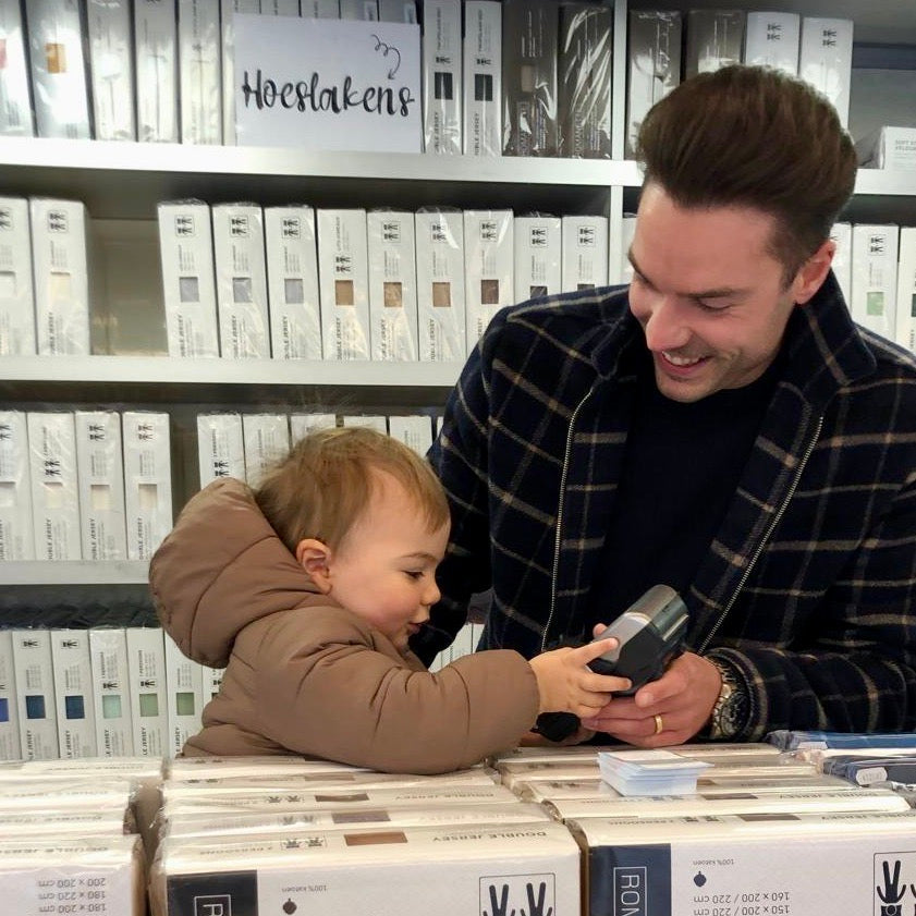 Ook ons zoontje helpt af en toe mee op de markt. Dozen klaarzetten, een handje toesteken of gewoon met een glimlach klanten begroeten – hij is er graag bij. Bedtextiel is bij ons een échte familiezaak, en dat voel je.
